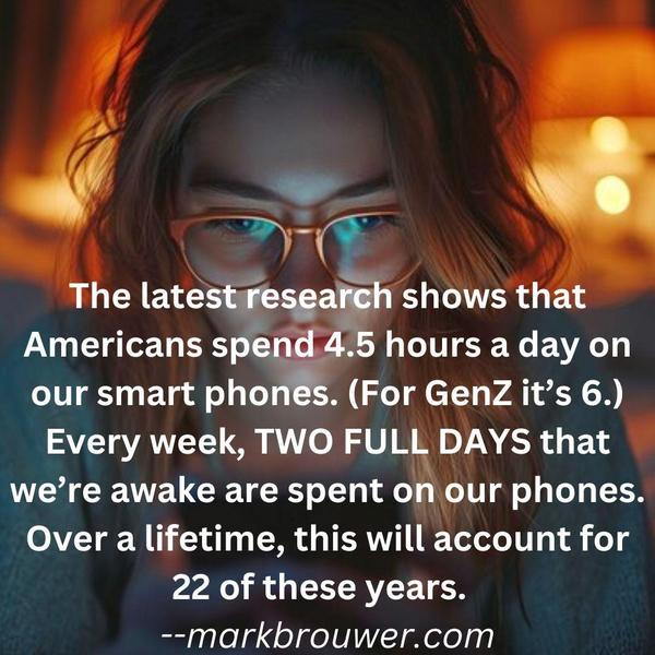 4. What I Would Post on Social Media ... if I used it I came across this statistic from a recent study, and it was so alarming that I did a little math with it, and then put it into an image. The deceptive thing about how much we use our phones is that we're almost always doing multiple things -- we're on our phone at work, while waiting in line, using the restroom, even watching TV. It's crazy how much we're using them ...