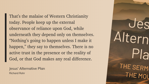 Richard Rohr points out that in much of Western Christianity today, we don’t often live from that kind of trust. We talk about faith, but too often it doesn’t translate into a spirit of peace, joy, or freedom. And that, he